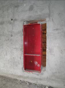 通过上面对房间隔声量的分析,可以知道墙面的厚度对隔声量有着较为直接的影响,故在房间设计的过程中,要尽量减少在演播室的外墙嵌入消防箱的做法。如图3所示,可以看到嵌入的消防箱厚度接近墙面厚度的一半,也就是这一部分的墙面隔声量会有明显的降低,从而降低房间整体的隔声量。在这种情况下,就需要与消防公司进行充分的沟通,在不影响消防安全的前提下,修改消防箱的位置或者改嵌入为外装,从最大程度上减少对墙体的损害。