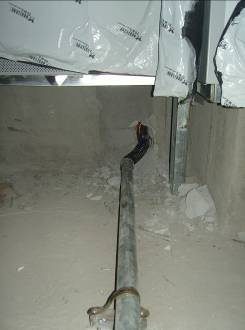 虽然不是每间演播室都会有排水管,但是当我们在现场勘查的过程中,发现了这种情况,一定要及早的向设计方提出质疑,并协调更改管线的走向。如图4,为演播室房内部穿过的排水管,它不但给演播室带来了不必要的噪声,同时也有漏水损害设备及人员的安全隐患,对于此类的问题需要有较强的协调能力及原则性。
