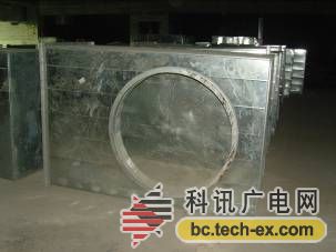 空调系统是破坏演播室墙体结构最大的因素,为了确保演播室的制冷量,通常空调管道尺寸较大,故对墙面的破坏是不可避免的,如图6所示为空调系统的穿过墙面的进、回风口。在声学设计的过程中,会在空调管道以下做一层隔声层,来有效的弥补空调对房间隔声量的破坏,如图7所示,为石膏板错缝拼接的隔声层结构。但是对空调管道的封堵,也不能忽视,只有把空调管道的外壁与墙面严密封堵,才能从有效的降低外界噪声对其影响。由于空调管道尺寸较大且内壁光滑,通常对声音的反射十分有效,故在空调的安装过程中,出风口位置会增加带有吸声材料的消声装置,如图8所示为空调的消声管道,它是由穿孔金属板内填充多孔吸声材料制成,对高频有较好的吸声效果。同时演播室这类空调的出风口位置,会避免使用一些较薄的风叶材料来避免它产生二次噪声。