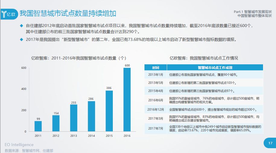 我国智慧城市建设虽落后于欧美地区,但在政府的支持和企业的参与下,目前已取得阶段性进展:已有95%的副省级城市、83%的地级城市,总计超过500座城市,均明确提出或正在建设智慧城市。