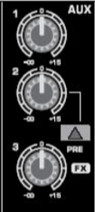 来自声道排的已处理的单个信号将在Aux( 辅助) 线路上集中并向外送到效果器或送到内部效果处理器进行加工。然后信号通过Aux Return( 辅助返回) 插孔或内部线路进入MainMix( 主混音)。舞台上音乐家也是通过Aux( 辅助) 线路来得到混音的结果 (Monitormix( 监听混音))。同样也可为录音机、末级放大器、耳机和两音轨输出端准备信号。
