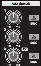 通过通道中的Aux Send FX 和Aux Send FX总调节钮你可设定效果处理器的输入信号。