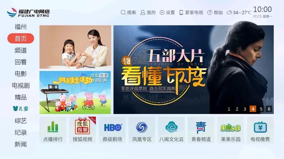 自2014年5月福建高清互动电视云平台上线以来,历经多次升级优化,四次迭代界面UI,每一次升级都给用户带来新层次的体验,互动平台活跃度居全国同行前列。平台节目和应用日趋丰富,高、标清直播频道多达200套,独家传输央视4K超高清节目,提供92个频道节目10天内回看,电影院线、热播剧、精品少儿、戏剧方言、黄冈名师课,以及卡拉OK、QQ音乐、电竞游戏等内容,让用户不仅可以看电视、用电视,还可以“玩”电视。平台还聚合了优酷、爱奇艺、腾讯三大视频网站资源,让喜欢追网剧的用户摆脱手机、pad的小屏限制,享受大屏带来的优质视听感受。