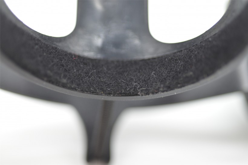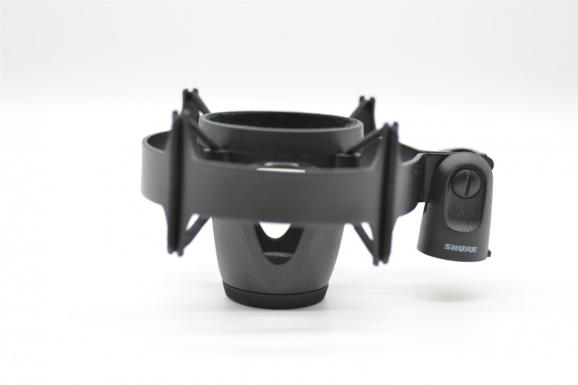 减震架的做工还是不错的。在与话筒架的接口处还印着Shure logo。话筒与减震架是通过底部旋转口来进行固定,这也为话筒倒置提供了可能。有一个小小细节是,话筒与减震架的接触位置内部还安装了一圈的垫片,为了防止减震架与话筒摩擦而伤害到话筒,可谓非常有心。