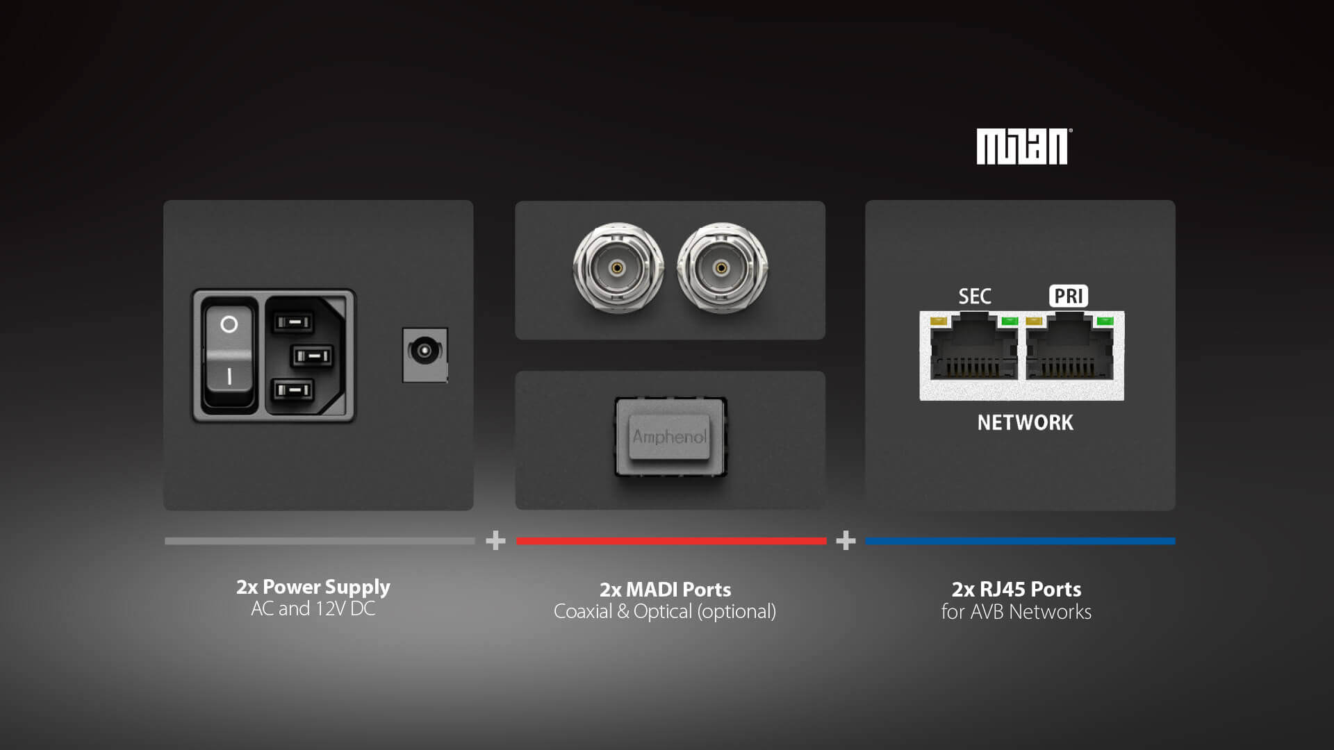 HDSPe AoX家族有两个产品,分别是支持Milan网络传输协议的HDSPe AoX-M,以及支持Dante网络传输协议的HDSPe AoX-D。