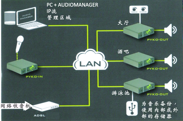 当需要在共享的 IP 网络中传输和分配音頻讯号的时候,PYKO-in 和 PYKO-out 提供了专业的解决办法,适合各种应用场合:传输,工业,背景音乐,对讲寻呼,广播。
