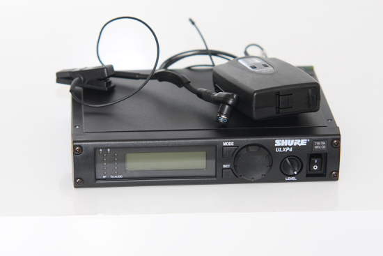 ULXP14/98H 包括:ULXP4 单个接收机,ULXP1腰包发射器,WB98H/C 可夹式乐器话筒的 ULX 专业无线乐器系统