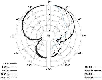 超心形话筒 MKH 8050 对于轴外的声音给予更大的衰减,相对心形话筒而言。它是对独唱者/独奏者录音的好选择,因为这些要求很高的声音分离。