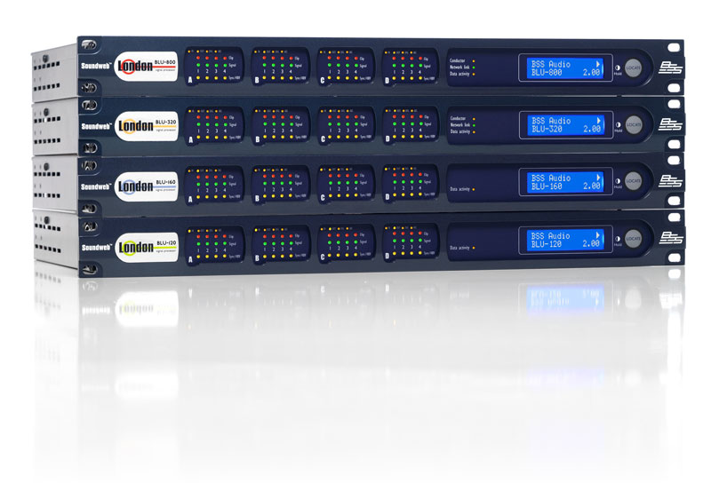使用 RJ45 线连接以太网(BLU-10,BLU-16 BLU-32, BLU-80); 使用 2 x CobraNet™ RJ45 线连接以太网(BLU-32, BLU-80) |