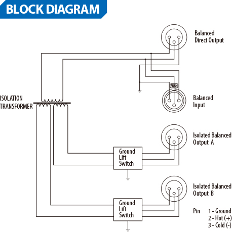 线路分配器的每一通道均分别设有三组输出:1 组直接输出、2 组变压器隔离输出、而该 2 组变压器隔离输出 (A及B) 亦同样设有地线分离选择开关,可帮助解决因地线回路产生的噪音。将开关推向左时,地线会设定分离;而将开关向右时,地线将会设定为连接。