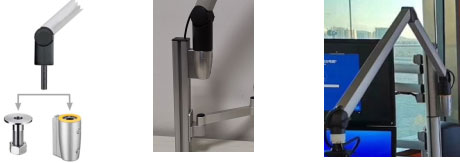组合将是一个全新的创新,随着当前视频/网络直播的兴起,直播系统需要更多的支架,如:灯光支架、手机平台支架、显示器支架等等,如何管理安装好这些支架,已是广播工程人员头疼的事,我们的组合支架由此应用而生,可以将话筒架,显示器架,灯光架,手机架全部集成与一个支架中。
