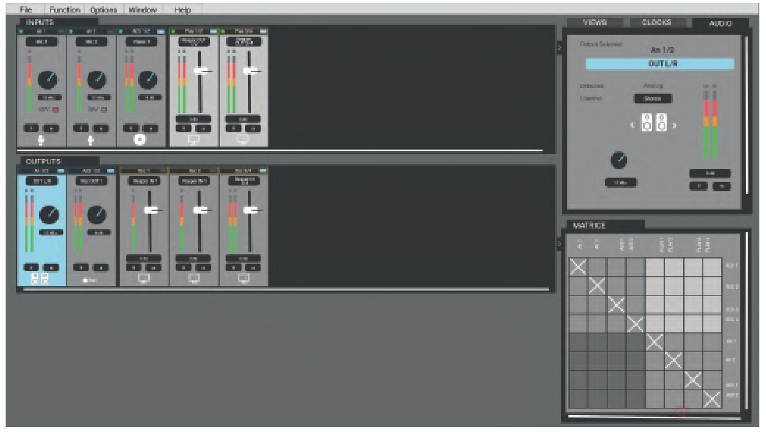 | 主要功能 零延迟板载混音器 硬件监控 调整输入输出电平 监听和录音前的混音 时钟和同步选择 完整的 I/O 矩阵允许将输入混合到任何输出 混音器输入: 模拟输入、AES3 输入和 DAW 播放通道 混音器输出: 模拟输出、AES3 输出和 DAW Record 通道 | ||